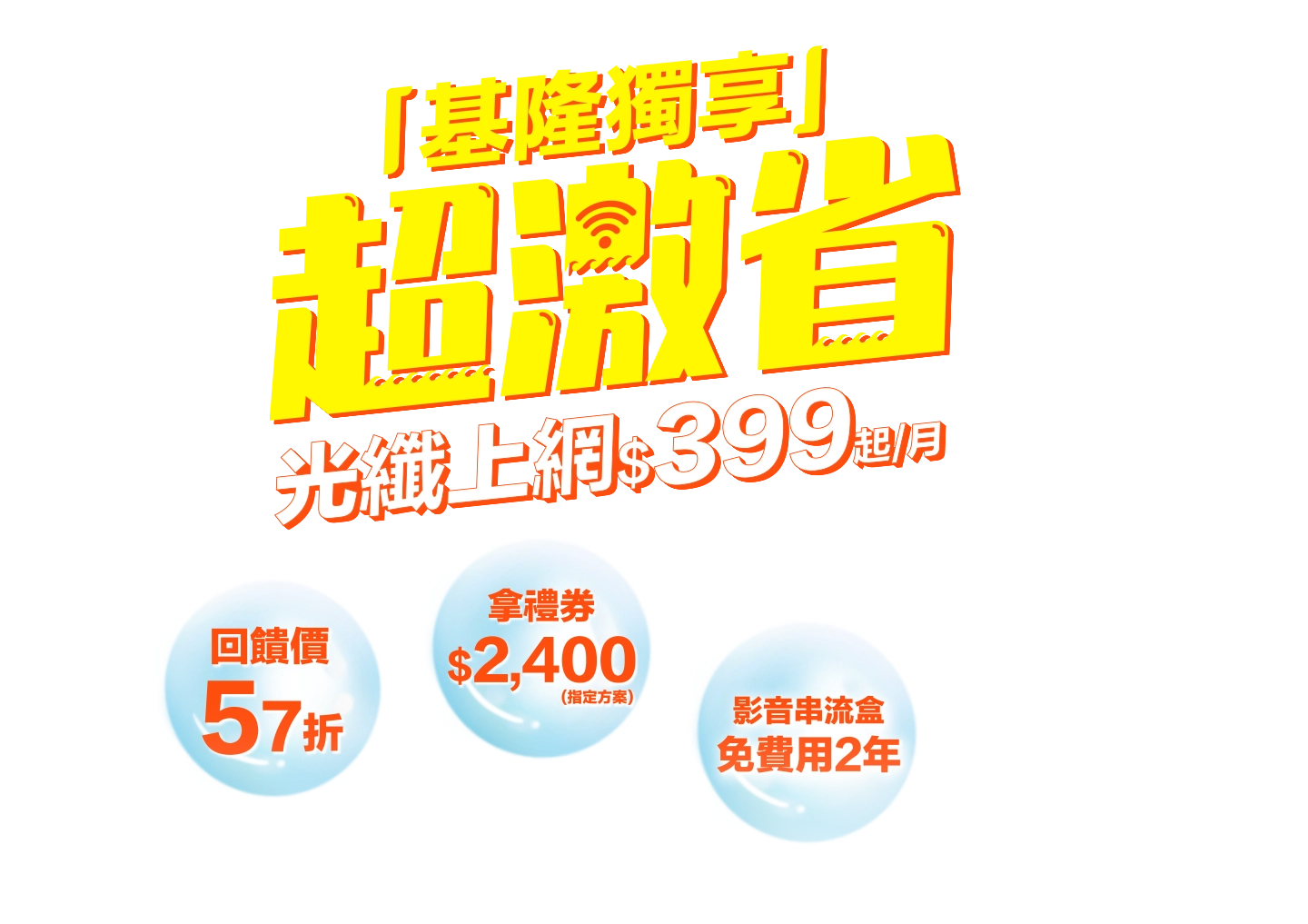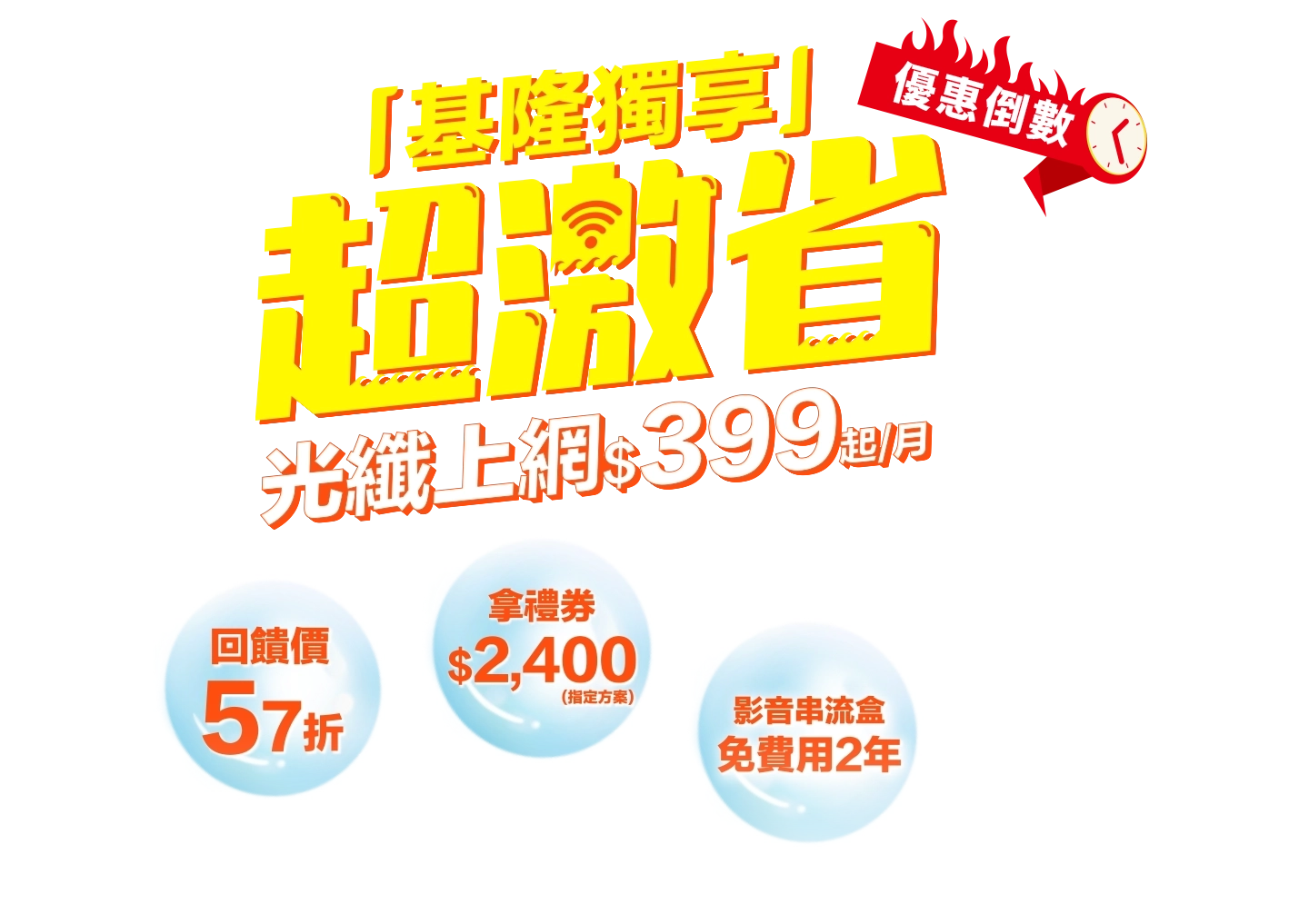 2.本專案為光纖上網服務搭家樂福電子禮券(下稱電子禮券) 2,400元。限同址及同申裝人於光纖上網及有線電視申裝使用期間收視使用。恕不得延期、兌換、轉贈或轉用於其他服務。