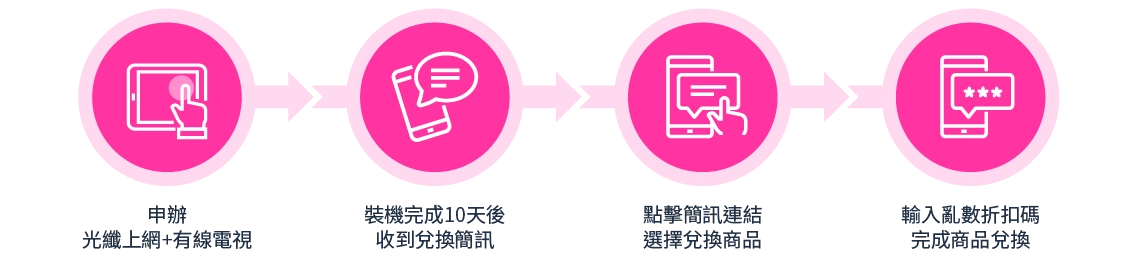 (1)裝機完工後或是專案變更為本專案並繳費完成後10日後將自動寄發「遠傳friDay購物」折扣碼簡訊至受理申裝時門號,請自行於簡訊內指定連結兌換商品,恕無法提供協助代訂貨服務。
